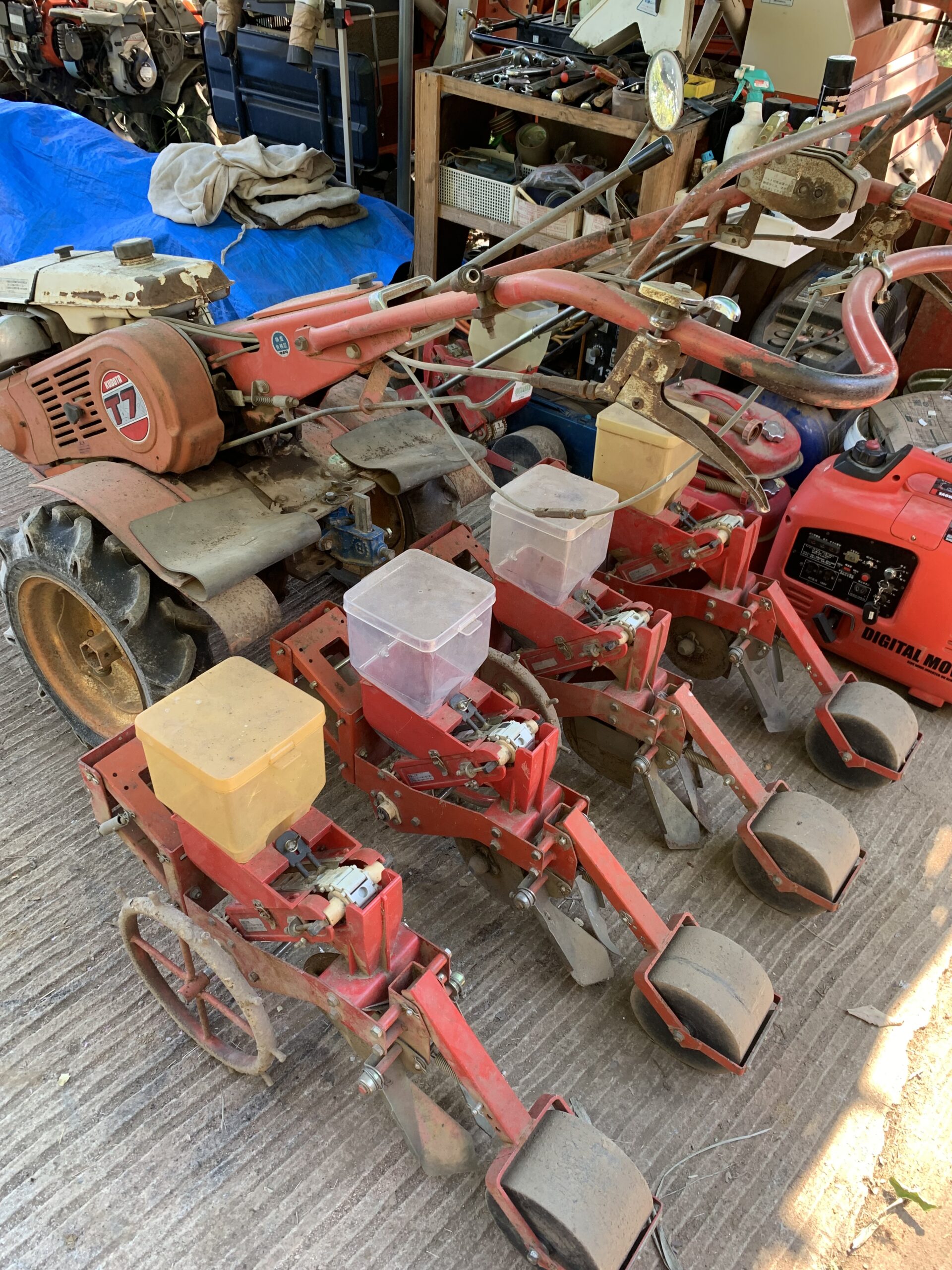 無理やり種まき機を4個つけてやってます。かなり重いですけど。